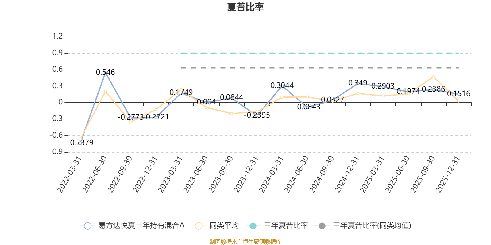 截至12月31日,基金近三年夏普比率为0.9001,位于同类可比基金133/542。