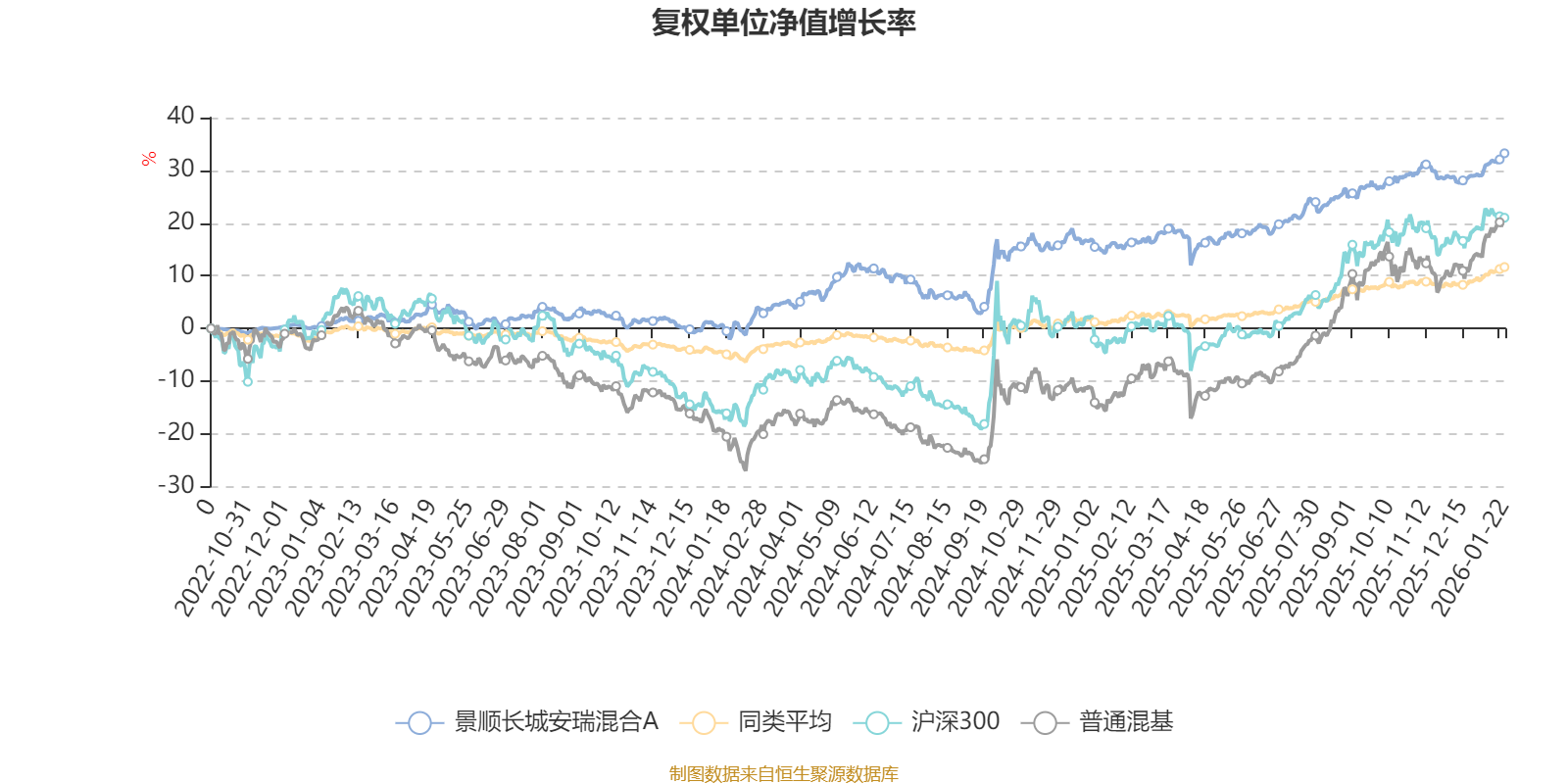 截至1月22日,景顺长城安瑞混合A近三个月复权单位净值增长率为3.71%,位于同类可比基金143/629;近半年复权单位净值增长率为7.93%,位于同类可比基金119/629;近一年复权单位净值增长率为15.38%,位于同类可比基金73/626;近三年复权单位净值增长率为30.72%,位于同类可比基金29/564。