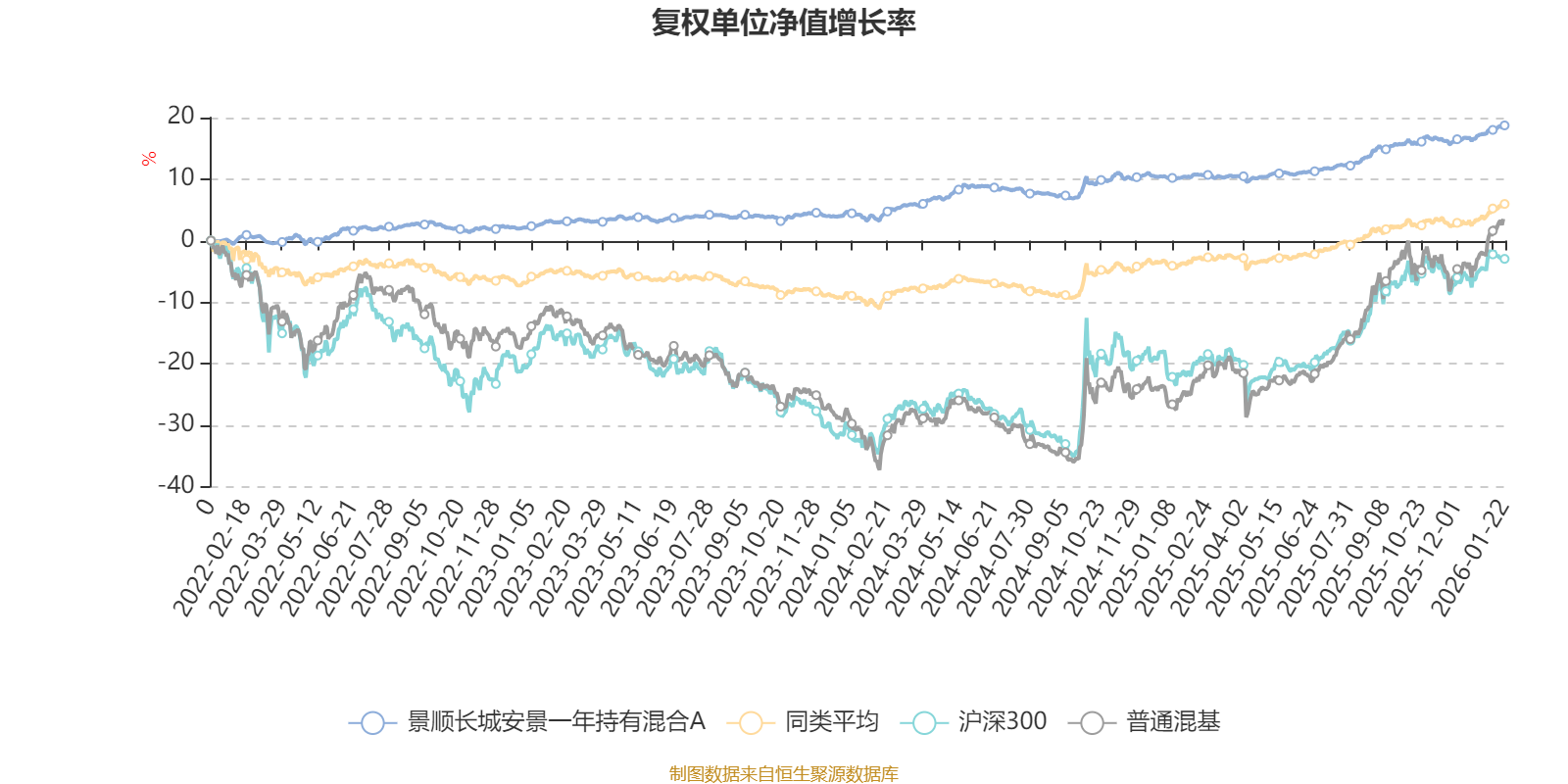 截至1月22日,景顺长城安景一年持有混合A近三个月复权单位净值增长率为2.26%,位于同类可比基金300/629;近半年复权单位净值增长率为5.69%,位于同类可比基金224/629;近一年复权单位净值增长率为7.54%,位于同类可比基金332/626;近三年复权单位净值增长率为15.12%,位于同类可比基金178/564。