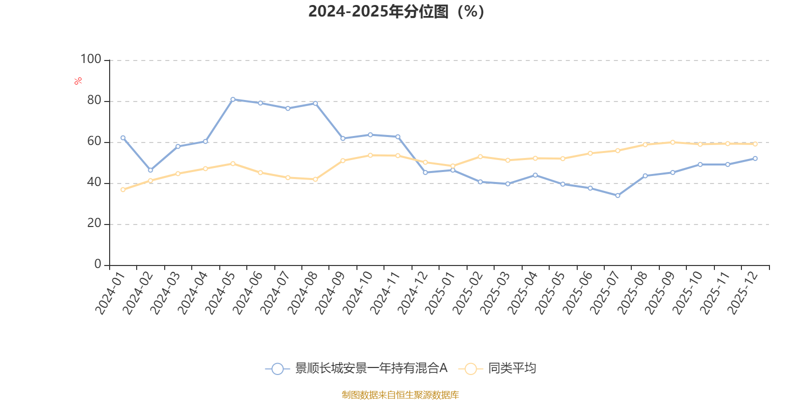 通过所选区间该基金净值增长率分位图,可以观察该基金与同类基金业绩比较情况。图为坐标原点到区间内某时点的净值增长率在同类基金中的分位数。