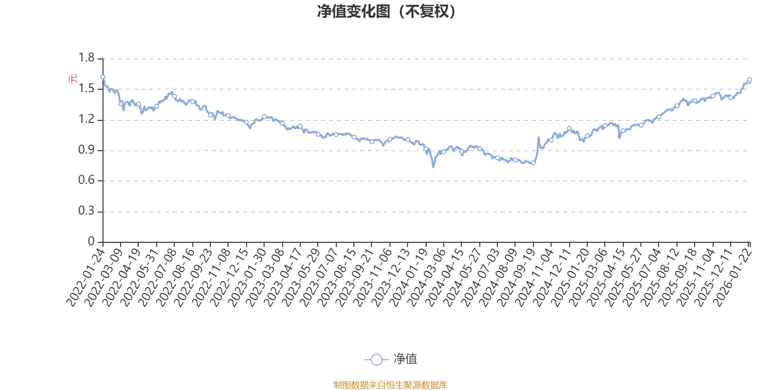 截至2025年四季度末,基金十大重仓股分别是中科江南、奥翔药业、凯普生物、吉贝尔、义翘神州、寿仙谷、上海凯宝、仁和药业、普瑞眼科、威高骨科。