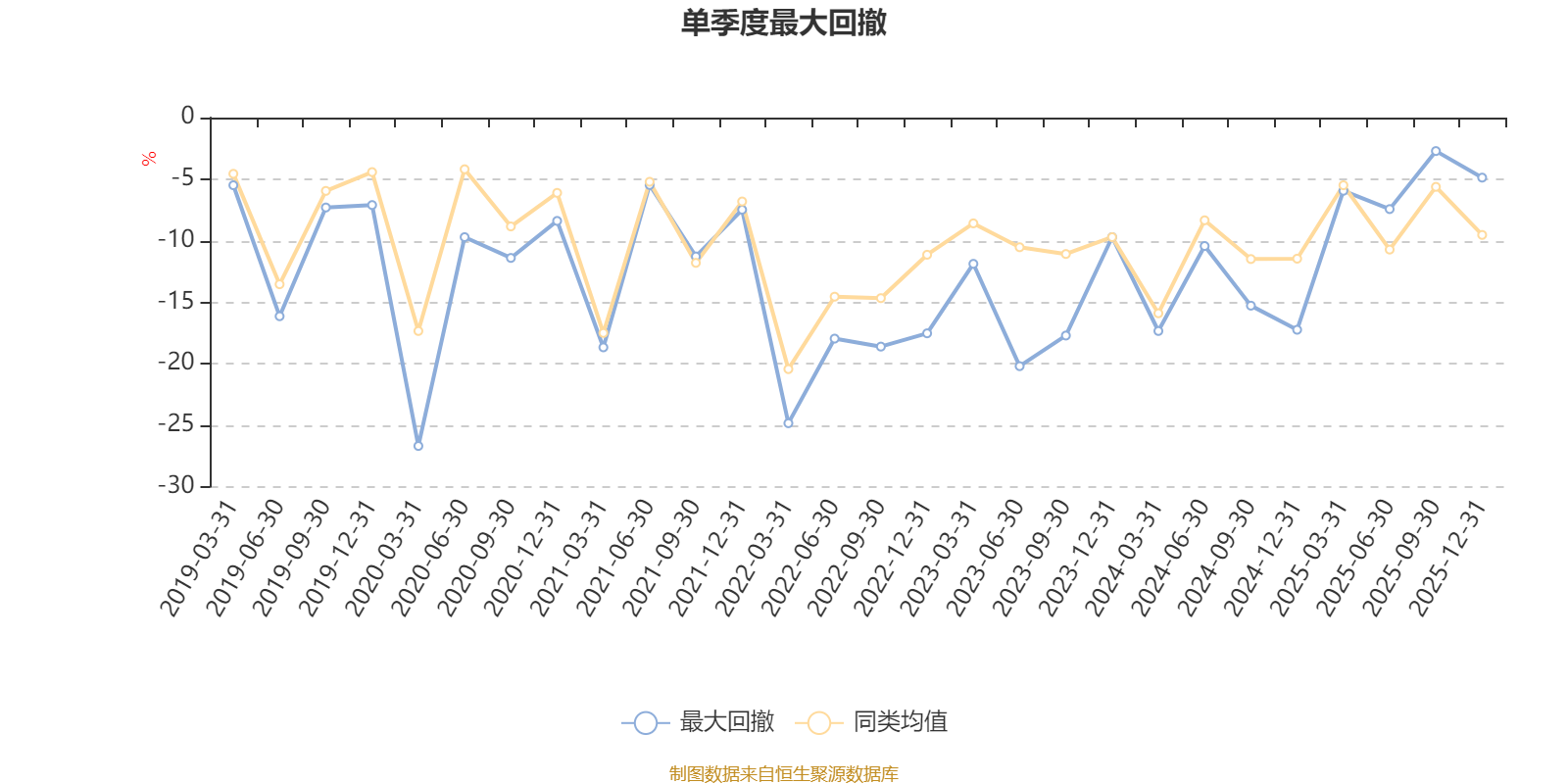 截至1月22日,基金近三年最大回撤为50.25%,同类可比基金排名151/156。单季度最大回撤出现在2020年一季度,为26.7%。