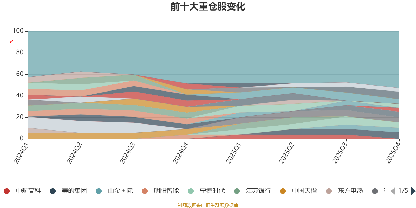 截至2025年四季度末,基金十大重仓股分别是中国平安、美的集团、华鲁恒升、宁德时代、药明康德、立讯精密、山金国际、云铝股份、宁波银行、中航光电。