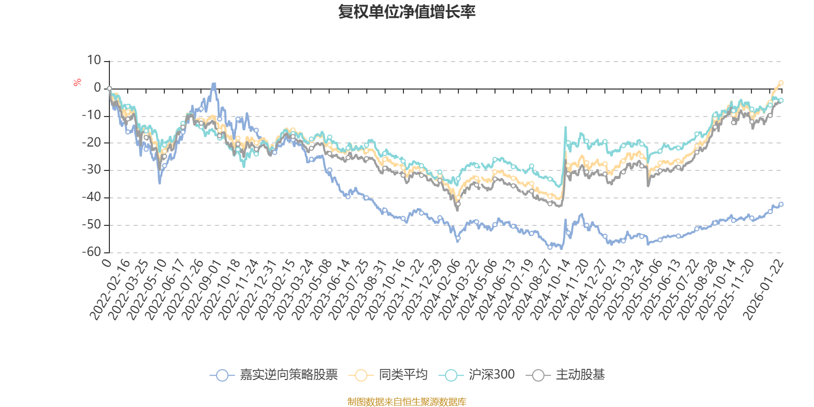 截至1月22日,嘉实逆向策略股票近三个月复权单位净值增长率为11.11%,位于同类可比基金81/167;近半年复权单位净值增长率为18.39%,位于同类可比基金122/167;近一年复权单位净值增长率为29.73%,位于同类可比基金128/165;近三年复权单位净值增长率为-28.24%,位于同类可比基金156/156。
