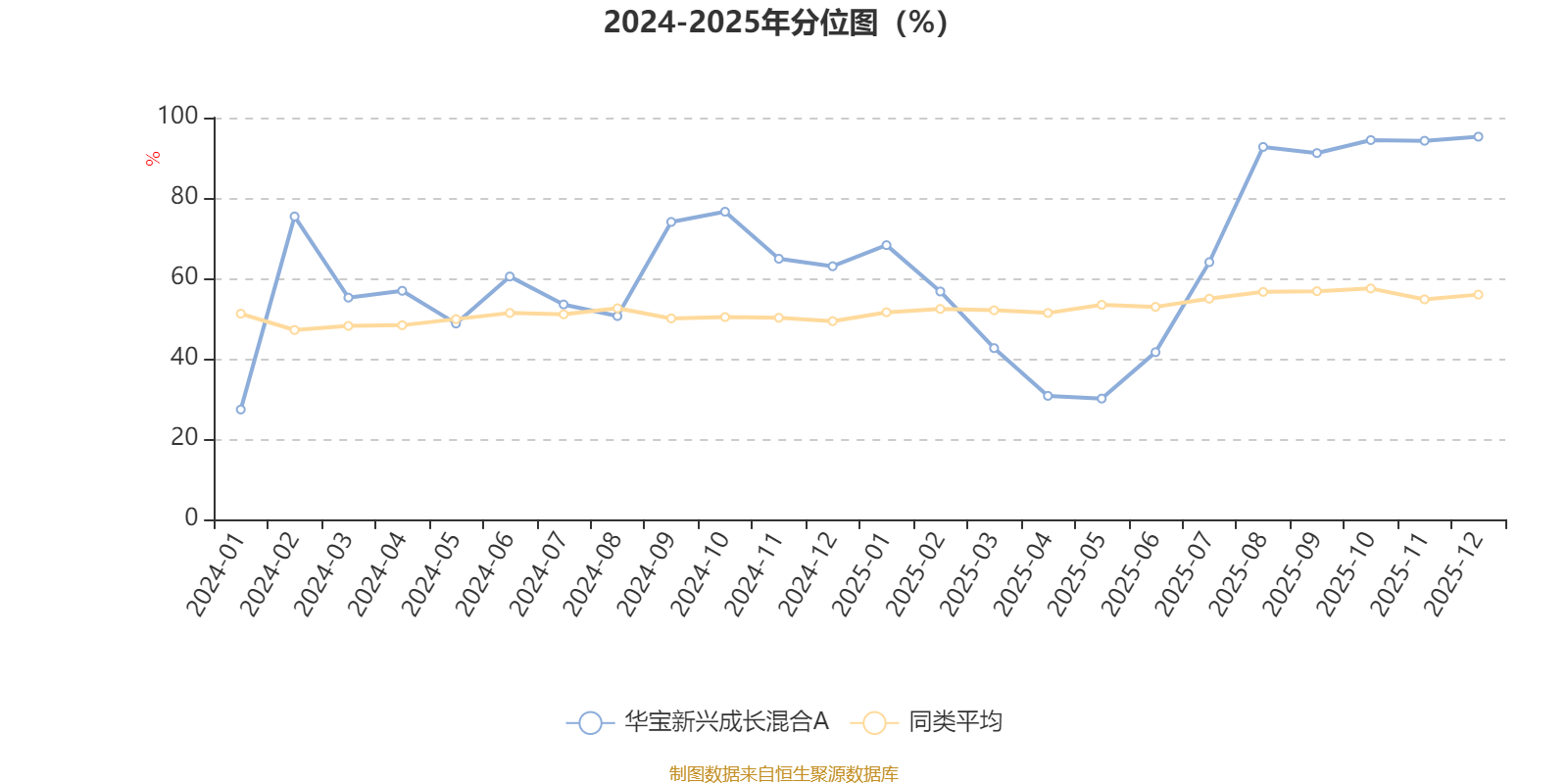 通过所选区间该基金净值增长率分位图,可以观察该基金与同类基金业绩比较情况。图为坐标原点到区间内某时点的净值增长率在同类基金中的分位数。