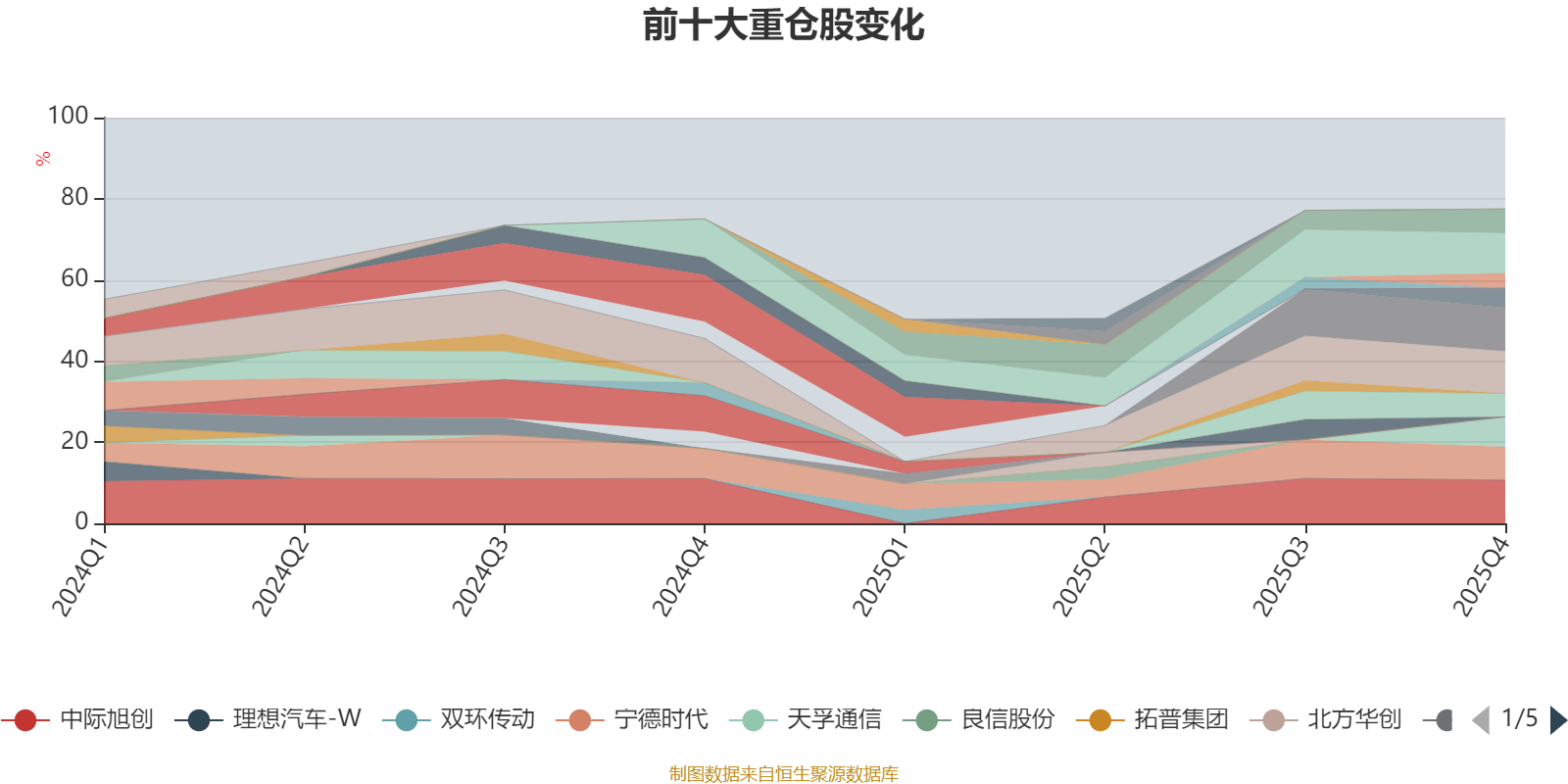 该基金持股集中度较高。截至2025年四季度末,基金十大重仓股分别是工业富联、中际旭创、新易盛、吉利汽车、宁德时代、天孚通信、东山精密、沪电股份、寒武纪、小鹏汽车-W。