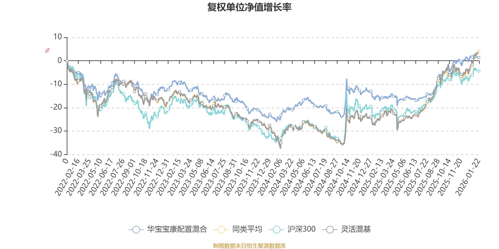 截至1月22日,华宝宝康配置混合近三个月复权单位净值增长率为3.94%,位于同类可比基金918/1286;近半年复权单位净值增长率为18.00%,位于同类可比基金733/1286;近一年复权单位净值增长率为19.52%,位于同类可比基金938/1286;近三年复权单位净值增长率为10.72%,位于同类可比基金779/1286。
