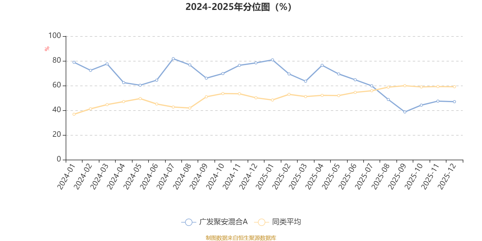 通过所选区间该基金净值增长率分位图,可以观察该基金与同类基金业绩比较情况。图为坐标原点到区间内某时点的净值增长率在同类基金中的分位数。