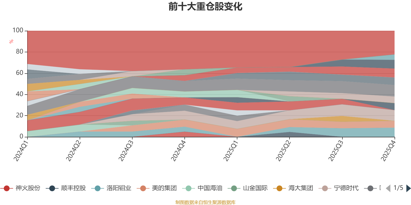 该基金持股集中度较高,近2年前十大重仓股集中度长期超过60%。截至2025年四季度末,基金十大重仓股分别是紫金矿业、宁德时代、洛阳钼业、杰瑞股份、宇通客车、中孚实业、云铝股份、美的集团、海信视像、春风动力。