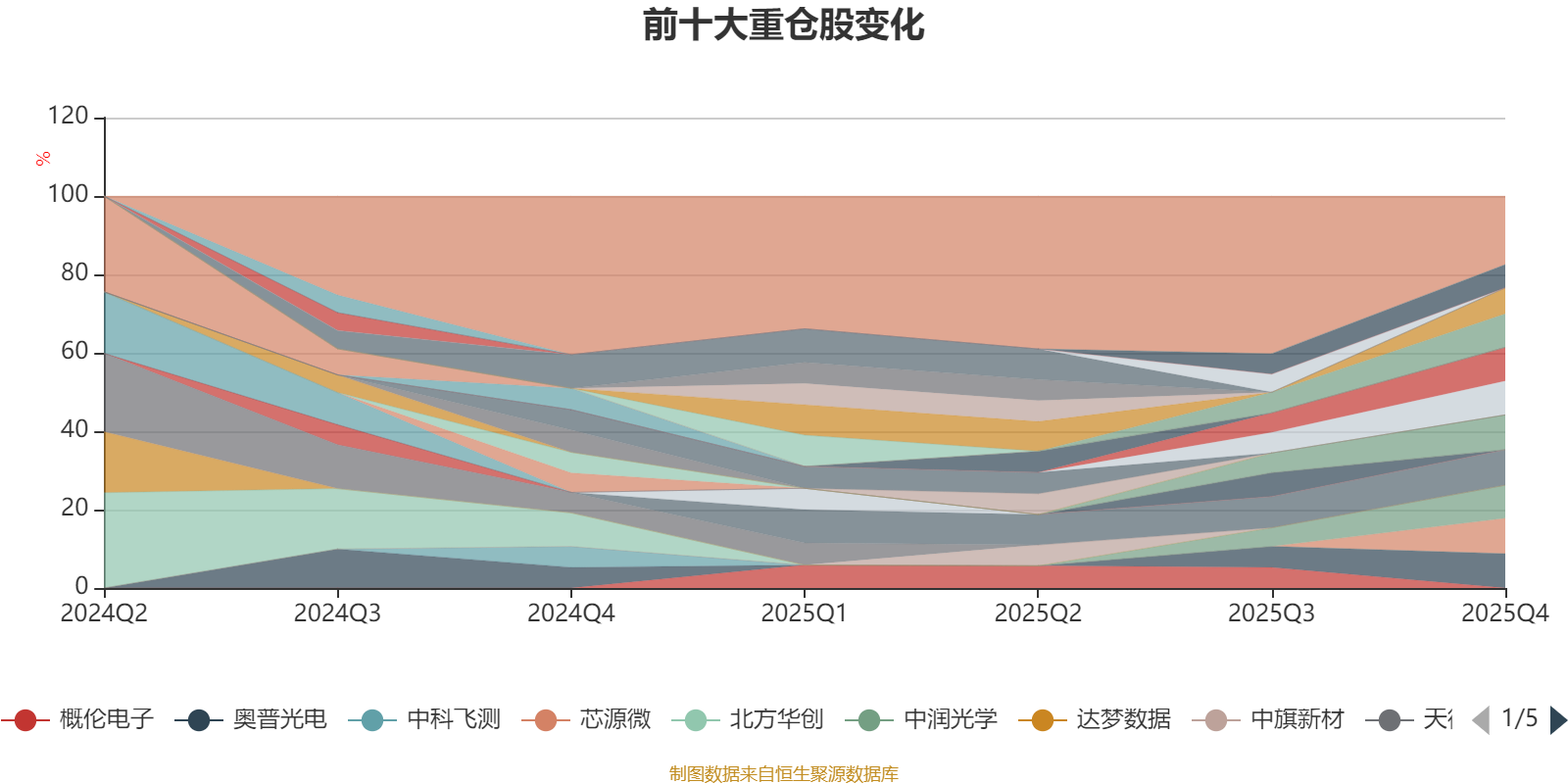 该基金持股集中度较高。截至2025年四季度末,基金十大重仓股分别是芯源微、精测电子、福光股份、奥普光电、波长光电、茂莱光学、汇成真空、中润光学、拓荆科技、福晶科技。