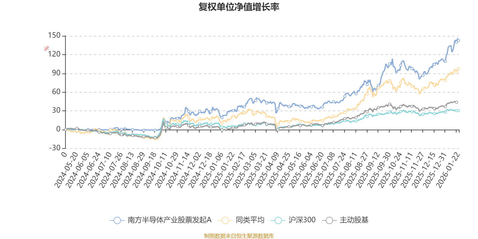 截至1月22日,南方半导体产业股票发起A近三个月复权单位净值增长率为23.96%,位于同类可比基金10/63;近半年复权单位净值增长率为64.96%,位于同类可比基金27/63;近一年复权单位净值增长率为86.25%,位于同类可比基金10/62。