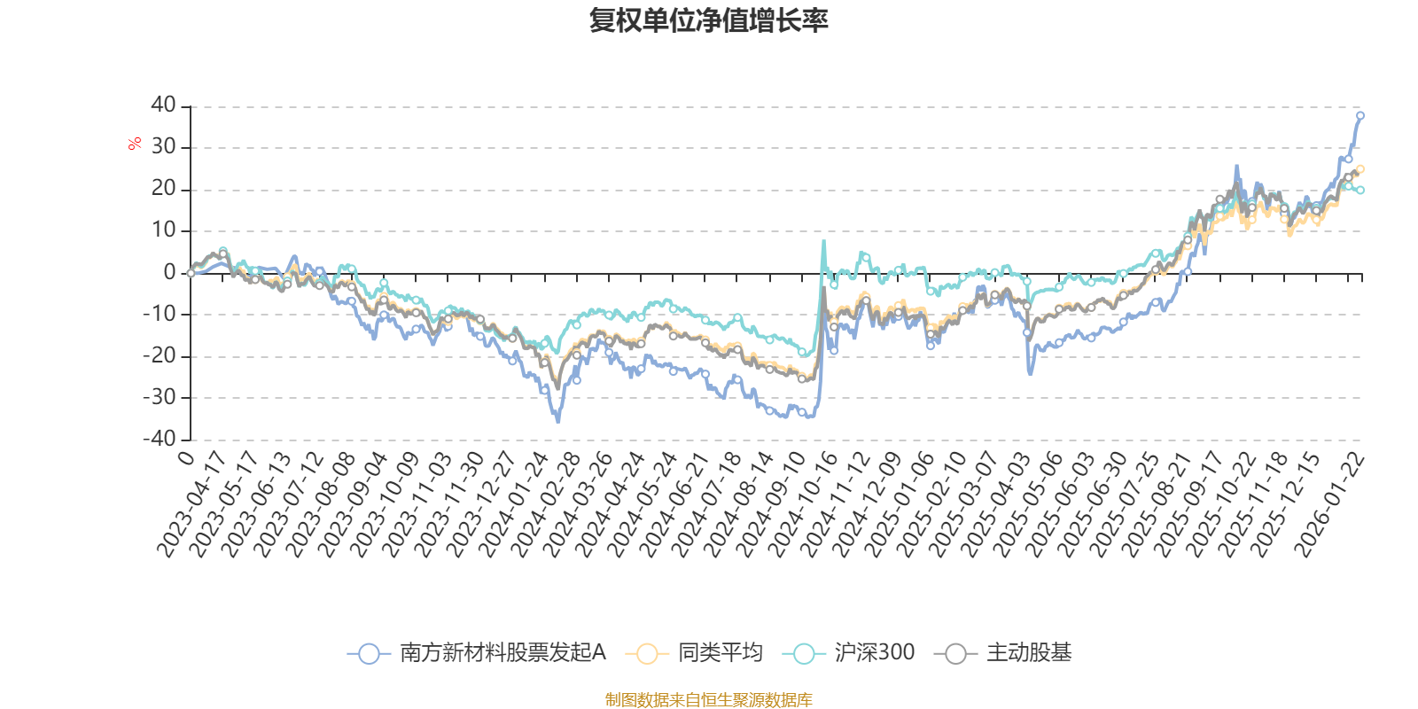 截至1月22日,南方新材料股票发起A近三个月复权单位净值增长率为17.57%,位于同类可比基金26/121;近半年复权单位净值增长率为48.62%,位于同类可比基金15/121;近一年复权单位净值增长率为54.20%,位于同类可比基金27/119。