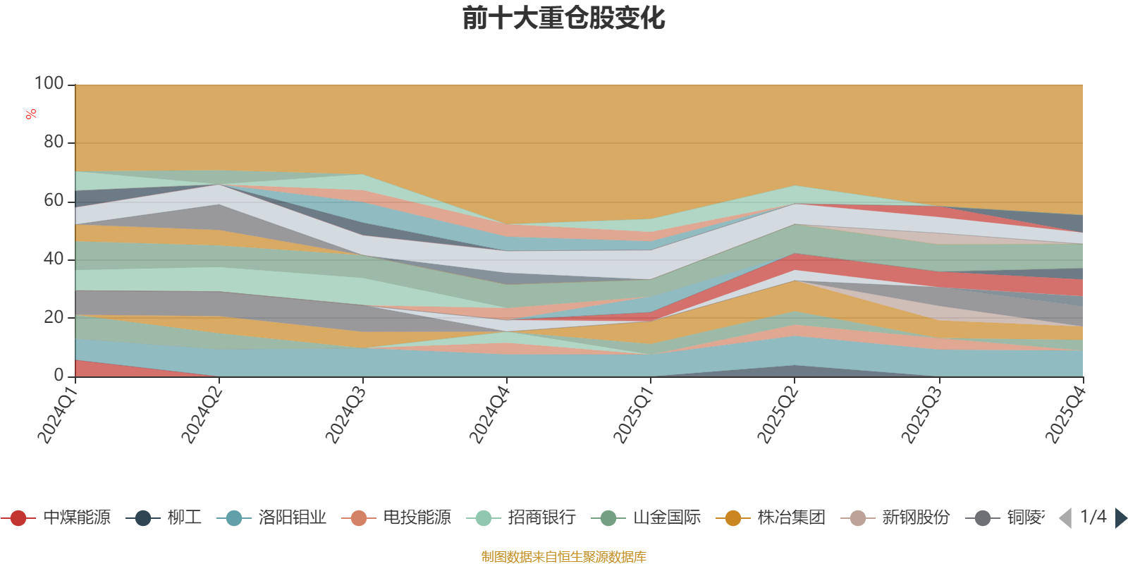 该基金持股集中度较高。截至2025年四季度末,基金十大重仓股分别是洛阳钼业、紫金矿业、铜陵有色、兖矿能源、金诚信、株冶集团、湖南黄金、云铝股份、山金国际、久立特材。