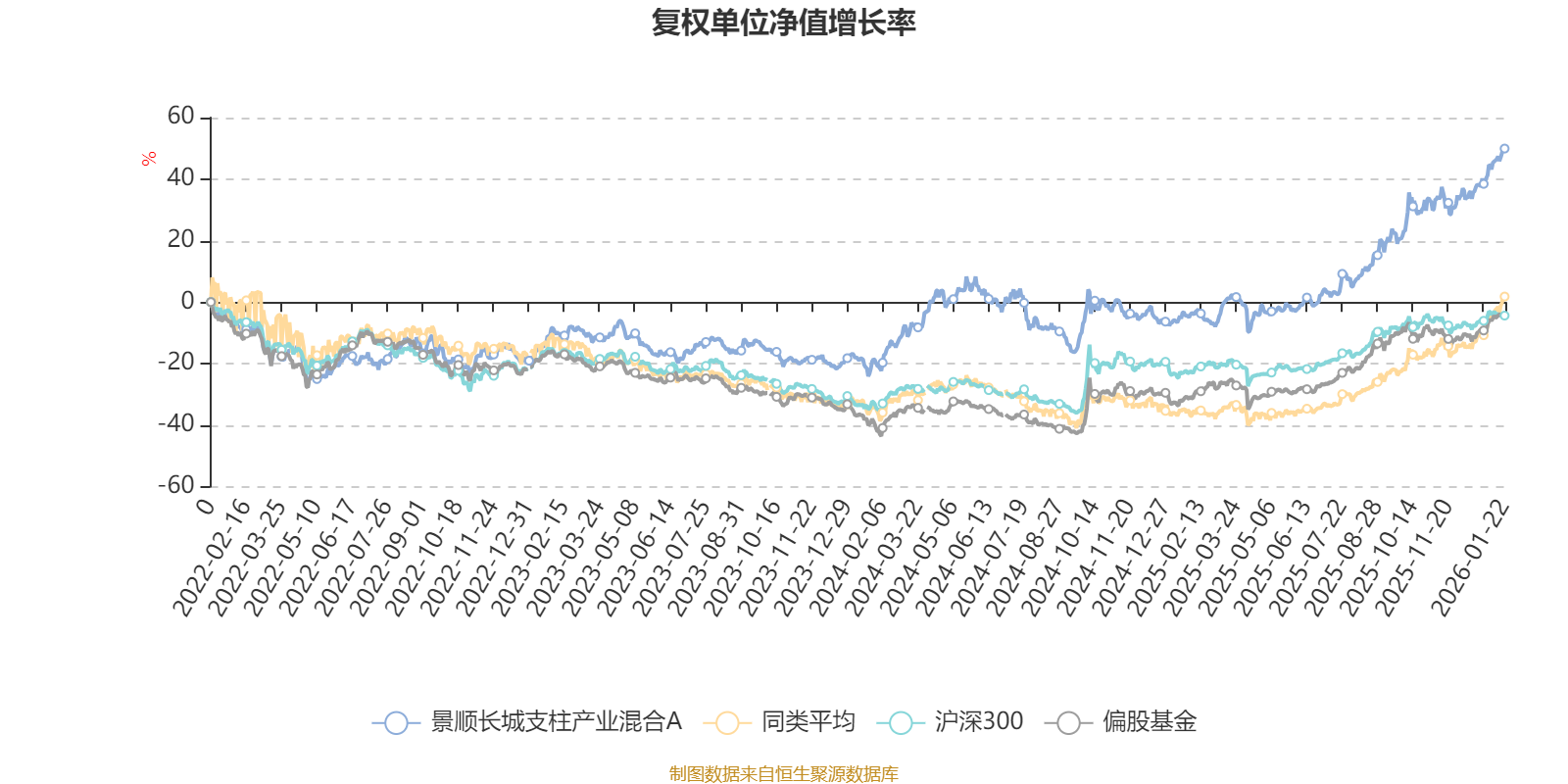 截至1月22日,景顺长城支柱产业混合A近三个月复权单位净值增长率为16.33%,位于同类可比基金28/49;近半年复权单位净值增长率为37.32%,位于同类可比基金27/49;近一年复权单位净值增长率为56.98%,位于同类可比基金26/46;近三年复权单位净值增长率为68.69%,位于同类可比基金9/30。