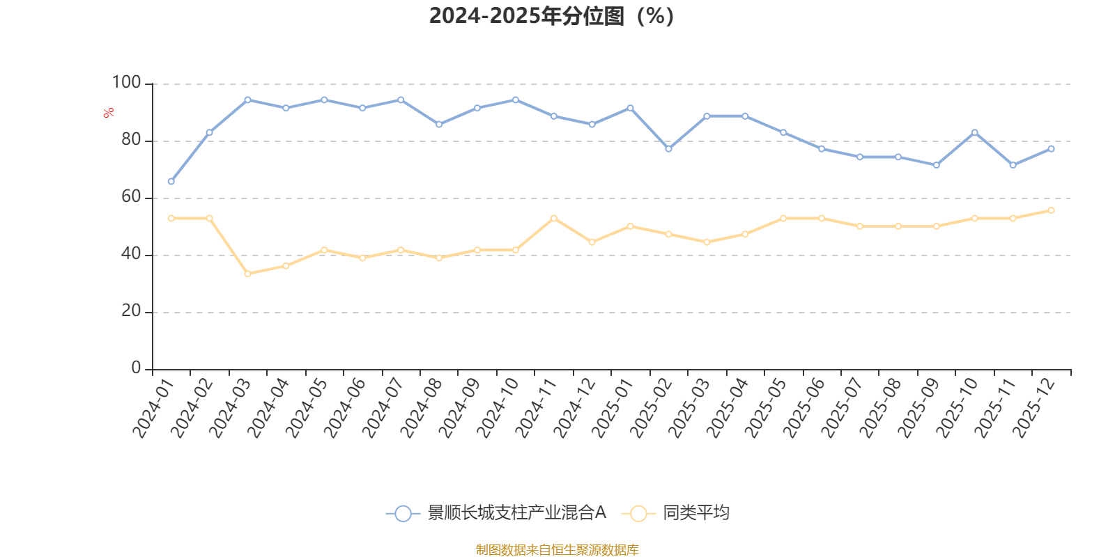 通过所选区间该基金净值增长率分位图,可以观察该基金与同类基金业绩比较情况。图为坐标原点到区间内某时点的净值增长率在同类基金中的分位数。