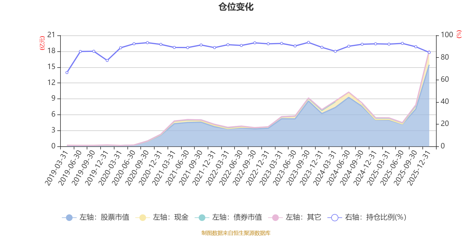据定期报告数据统计,近三年平均股票仓位为90.5%,同类平均为89.51%。2023年三季度末基金达到93.68%的最高仓位,2019年一季度末最低,为66.56%。