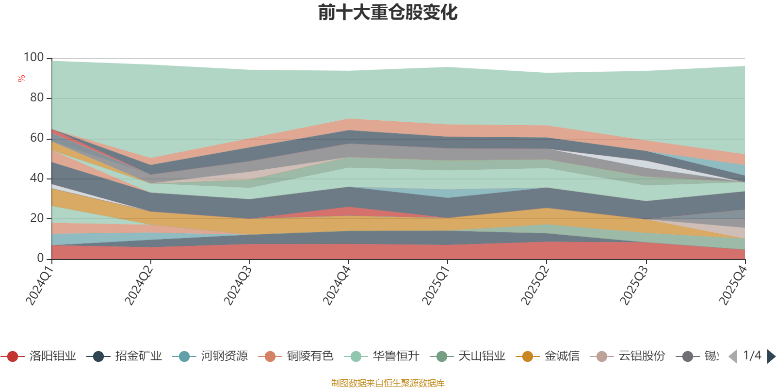 该基金持股集中度较高。截至2025年四季度末,基金十大重仓股分别是紫金矿业、天山铝业、云铝股份、西部矿业、华友钴业、洛阳钼业、紫金黄金国际、杰瑞股份、锡业股份、中国铝业。