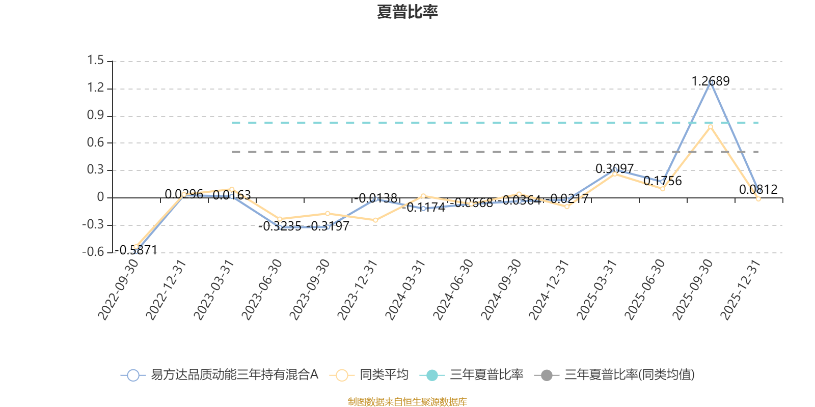 截至12月31日,基金近三年夏普比率为0.8225,位于同类可比基金5/20。
