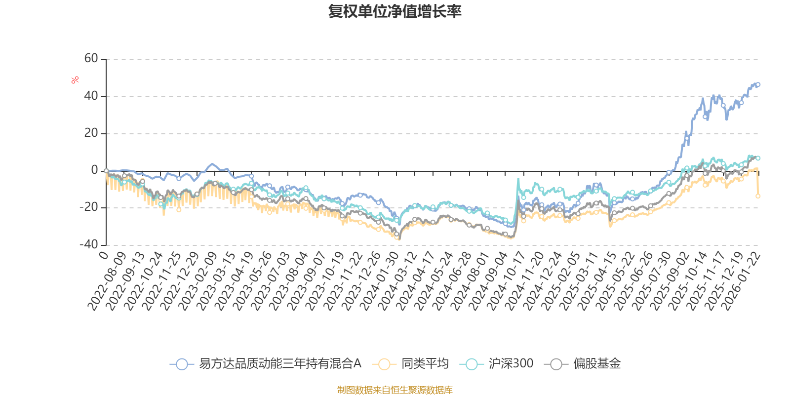 截至1月22日,易方达品质动能三年持有混合A近三个月复权单位净值增长率为10.81%,位于同类可比基金4/20;近半年复权单位净值增长率为52.59%,位于同类可比基金1/20;近一年复权单位净值增长率为79.56%,位于同类可比基金2/20;近三年复权单位净值增长率为43.50%,位于同类可比基金4/19。