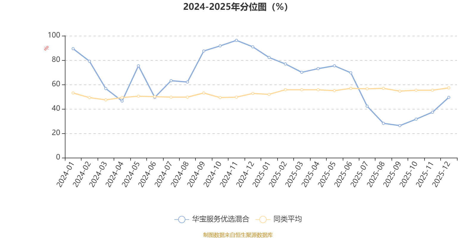 通过所选区间该基金净值增长率分位图,可以观察该基金与同类基金业绩比较情况。图为坐标原点到区间内某时点的净值增长率在同类基金中的分位数。