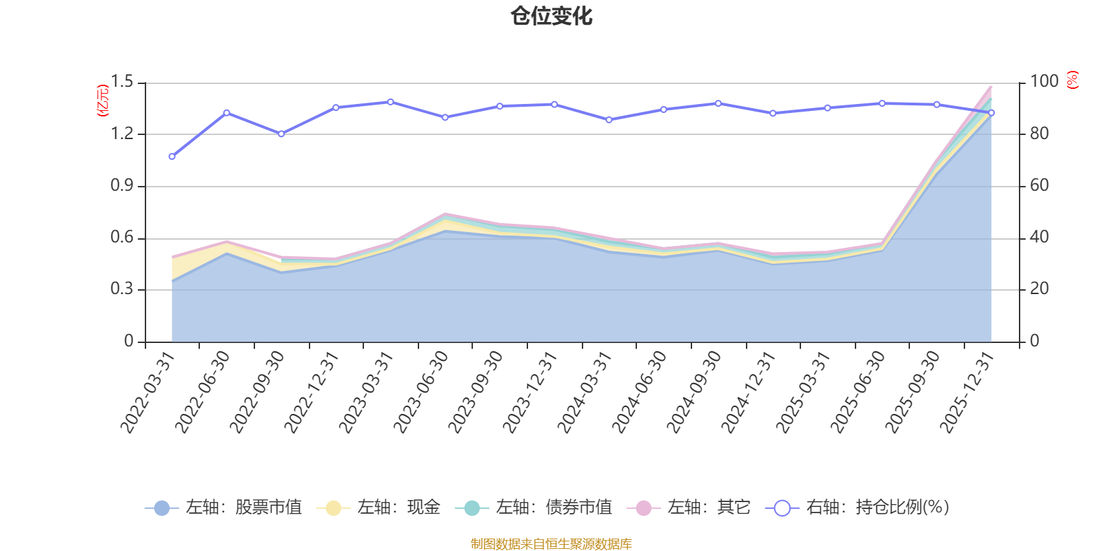 据定期报告数据统计,近三年平均股票仓位为89.96%,同类平均为86.9%。2023年一季度末基金达到92.58%的最高仓位,2022年一季度末最低,为71.54%。