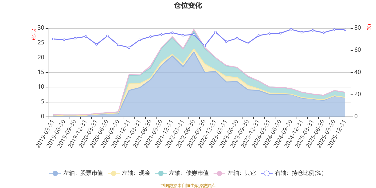 据定期报告数据统计,近三年平均股票仓位为74.65%,同类平均为72.57%。2024年三季度末基金达到78.96%的最高仓位,2020年末最低,为62.44%。
