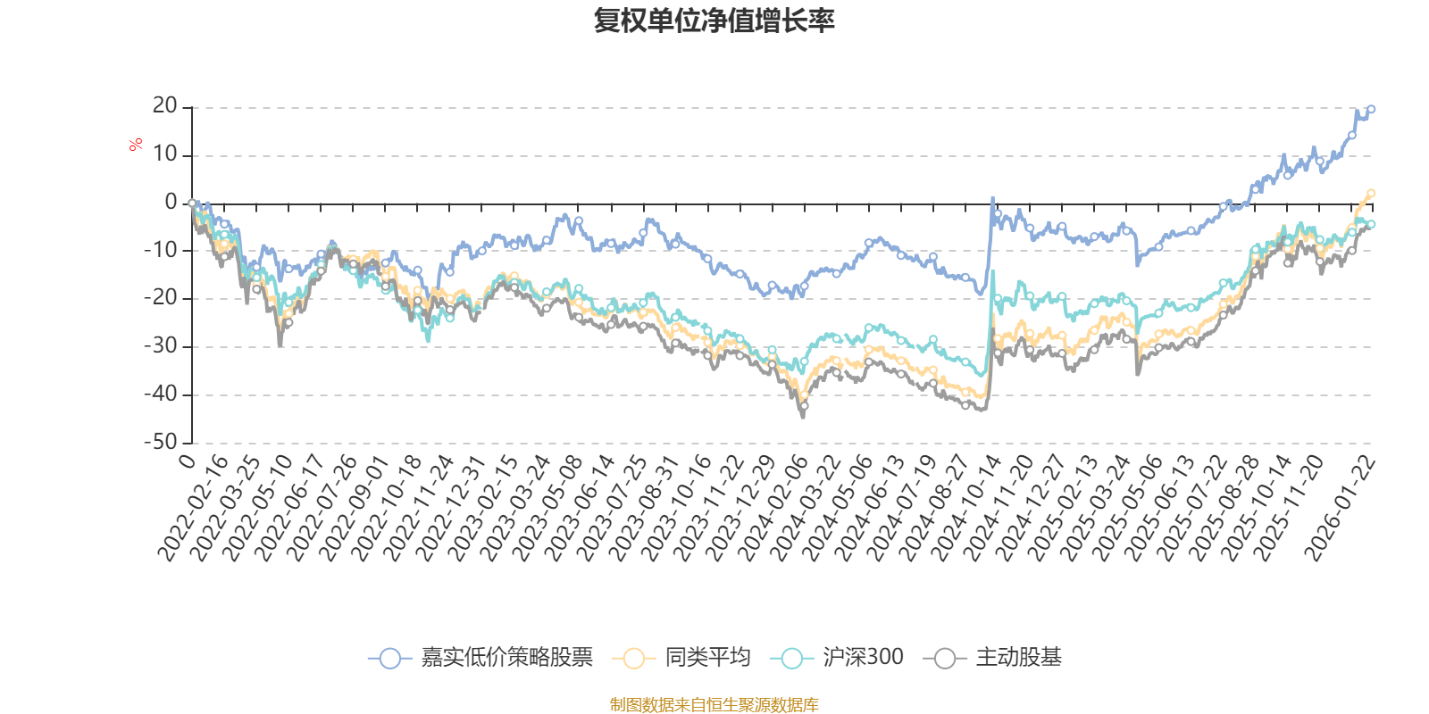 截至1月22日,嘉实低价策略股票近三个月复权单位净值增长率为12.38%,位于同类可比基金70/167;近半年复权单位净值增长率为20.42%,位于同类可比基金109/167;近一年复权单位净值增长率为30.16%,位于同类可比基金127/165;近三年复权单位净值增长率为27.91%,位于同类可比基金64/156。