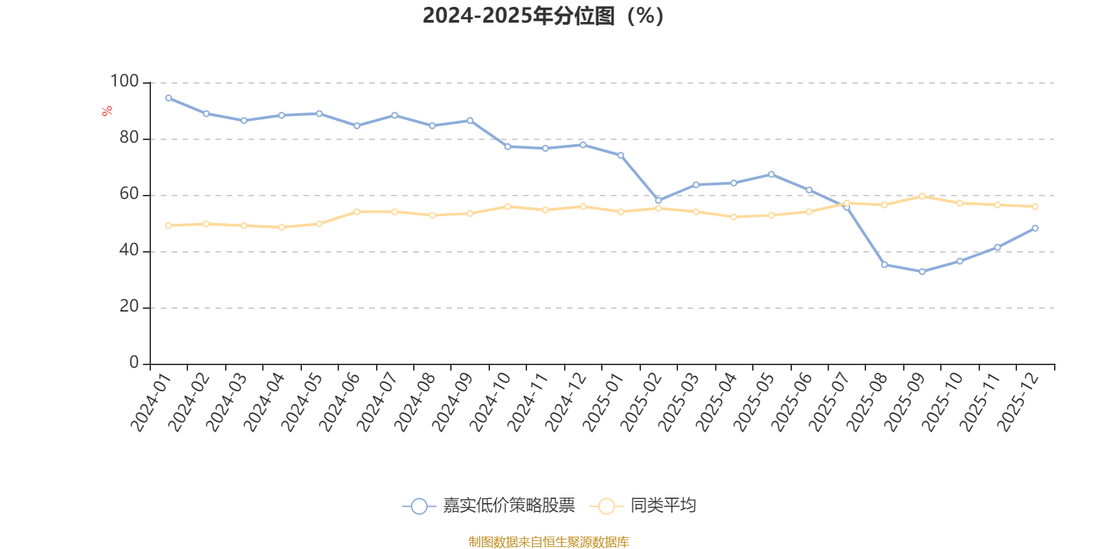 通过所选区间该基金净值增长率分位图,可以观察该基金与同类基金业绩比较情况。图为坐标原点到区间内某时点的净值增长率在同类基金中的分位数。