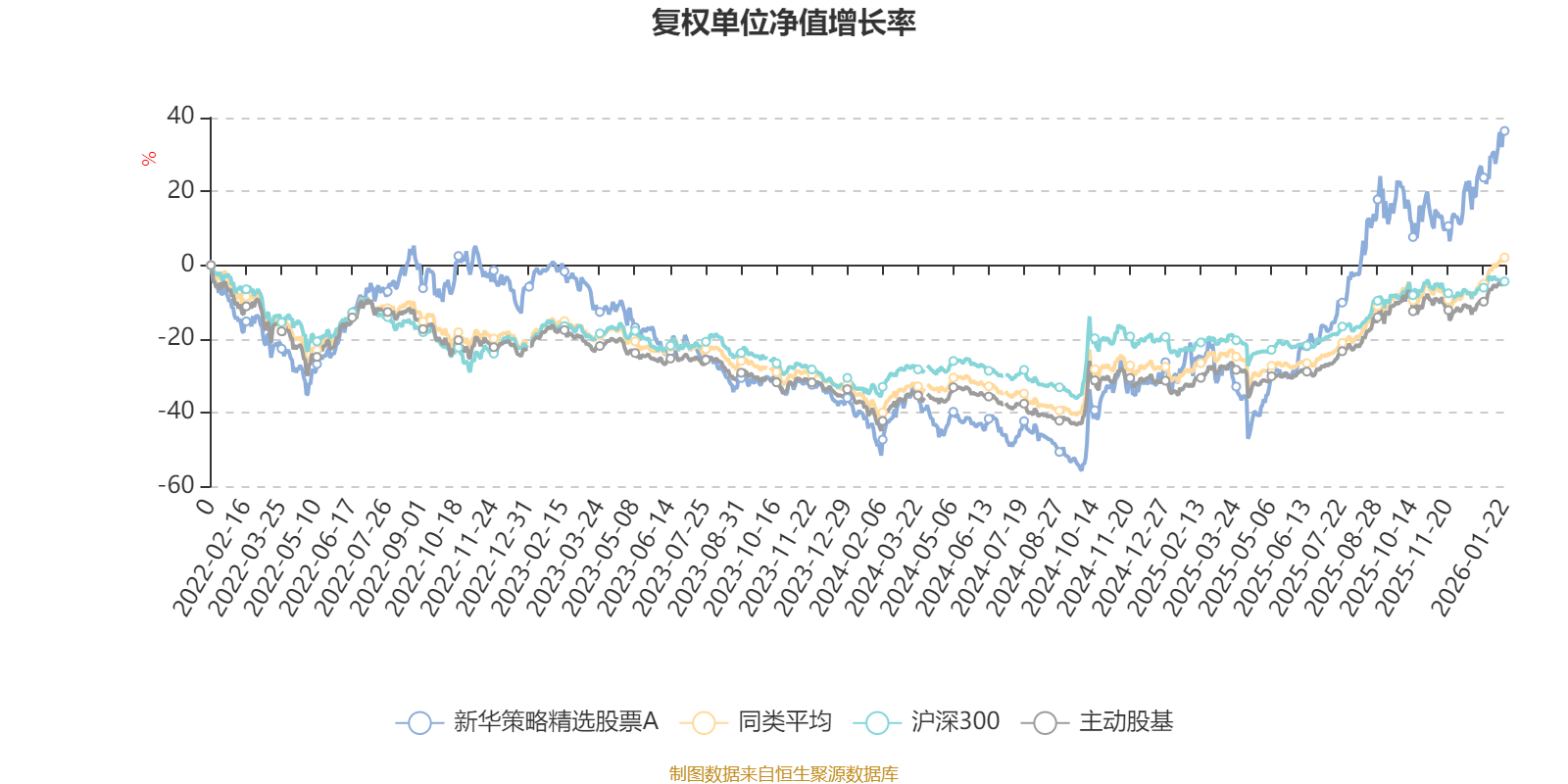截至1月22日,新华策略精选股票A近三个月复权单位净值增长率为18.15%,位于同类可比基金22/167;近半年复权单位净值增长率为51.75%,位于同类可比基金11/167;近一年复权单位净值增长率为75.68%,位于同类可比基金6/165;近三年复权单位净值增长率为37.91%,位于同类可比基金40/156。