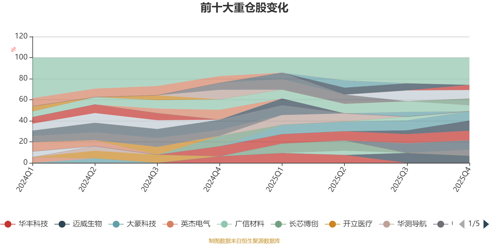 该基金持股集中度较高,近2年前十大重仓股集中度长期超过60%。截至2025年四季度末,基金十大重仓股分别是汇绿生态、鼎通科技、若羽臣、德科立、华峰测控、迈威生物、杰普特、中石科技、源杰科技、科创新源。