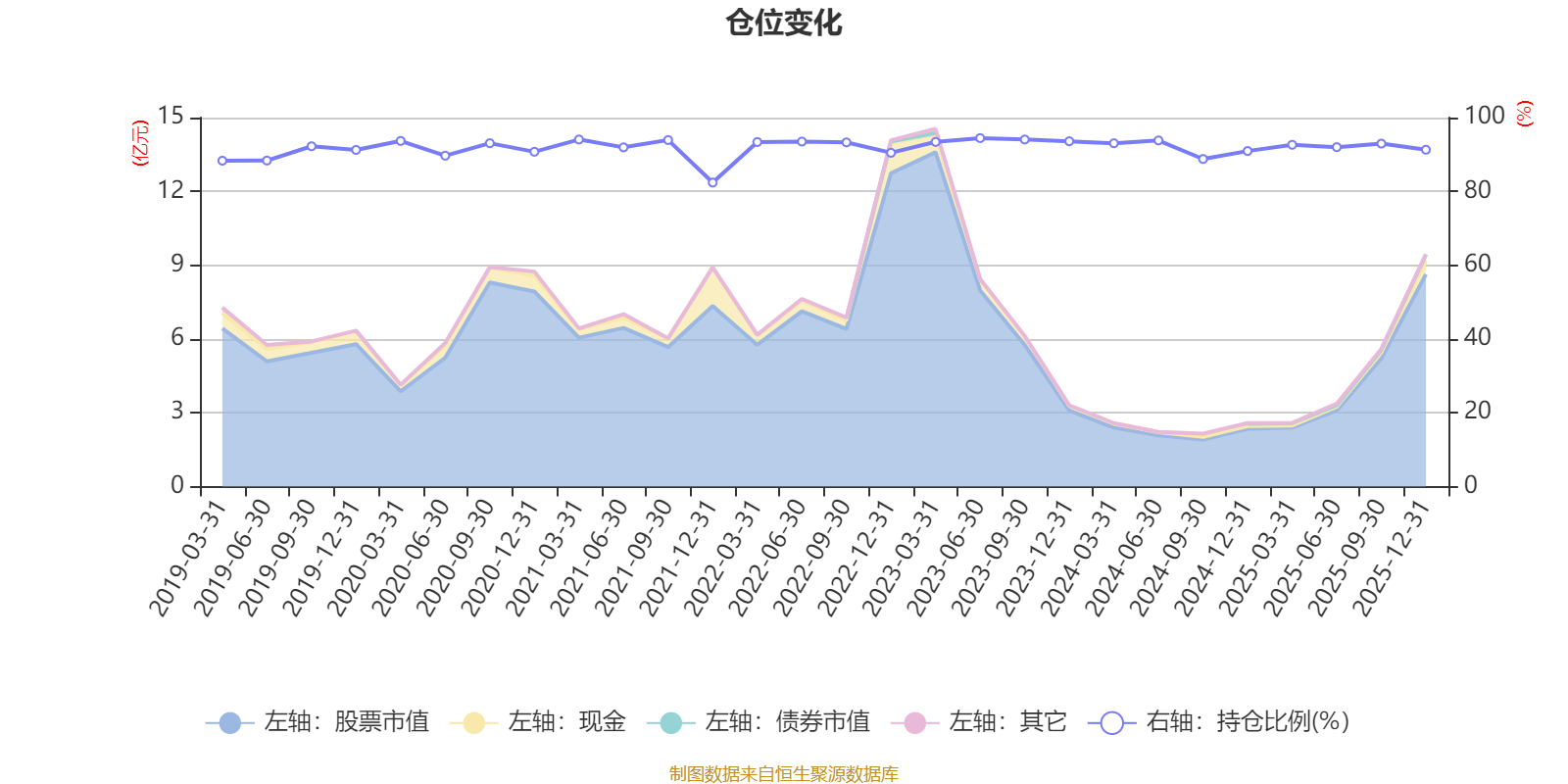 据定期报告数据统计,近三年平均股票仓位为92.58%,同类平均为88.27%。2023年上半年末基金达到94.45%的最高仓位,2021年末最低,为82.39%。