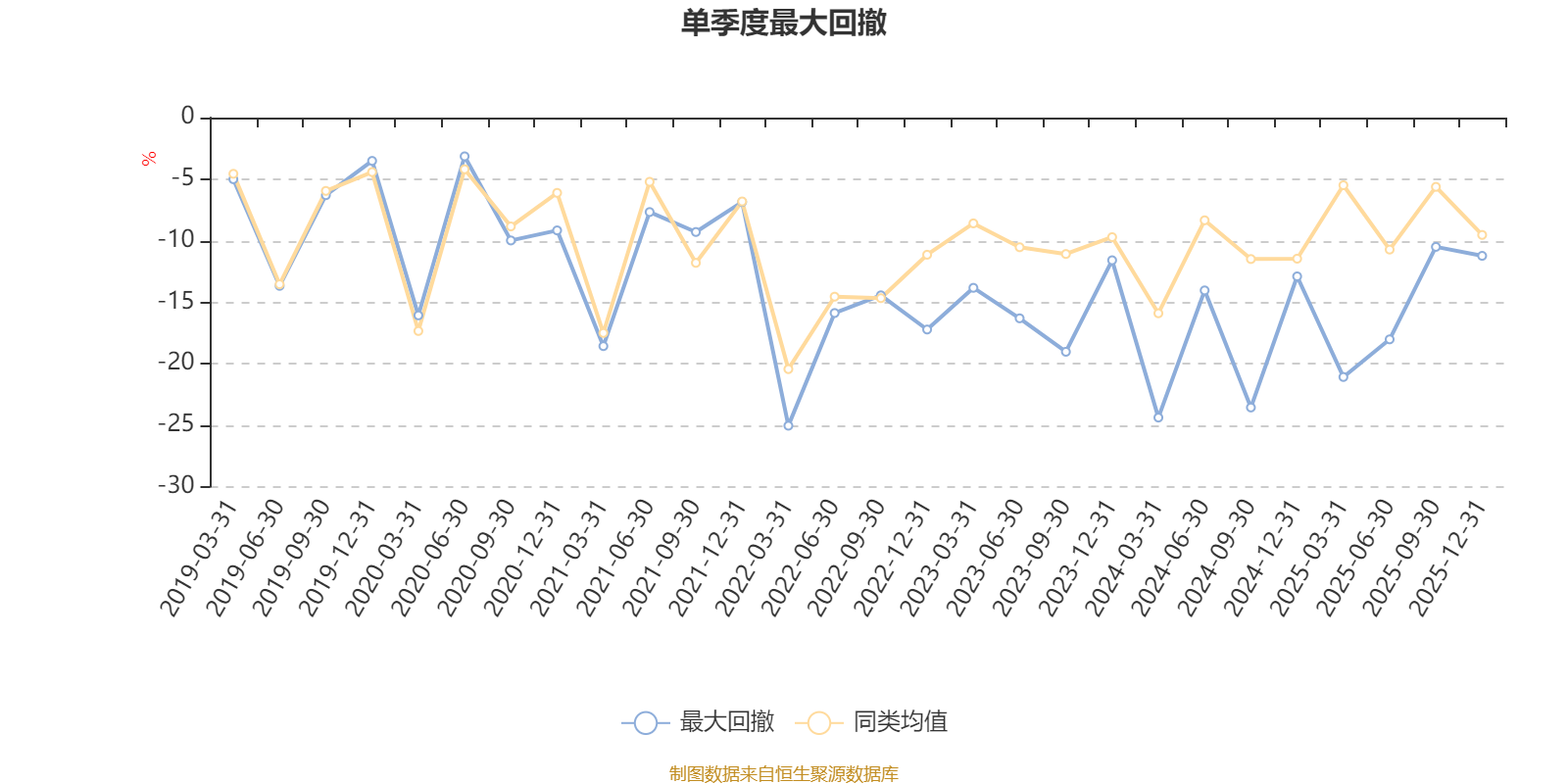 通过所选区间该基金净值增长率分位图,可以观察该基金与同类基金业绩比较情况。图为坐标原点到区间内某时点的净值增长率在同类基金中的分位数。