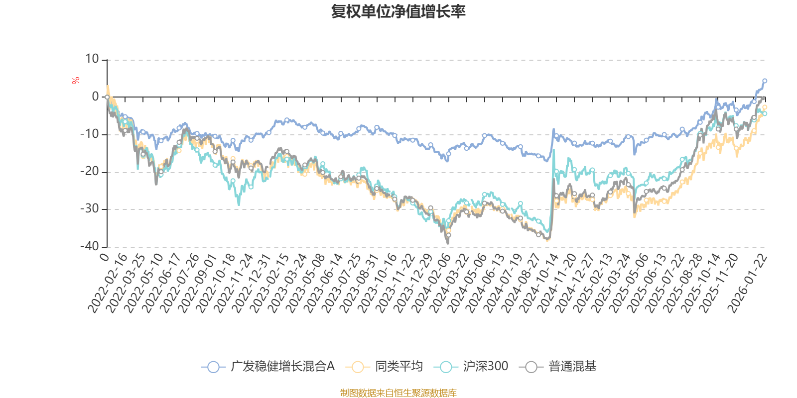 截至1月22日,广发稳健增长混合A近三个月复权单位净值增长率为7.56%,位于同类可比基金73/134;近半年复权单位净值增长率为14.10%,位于同类可比基金86/134;近一年复权单位净值增长率为19.01%,位于同类可比基金89/131;近三年复权单位净值增长率为11.81%,位于同类可比基金77/124。