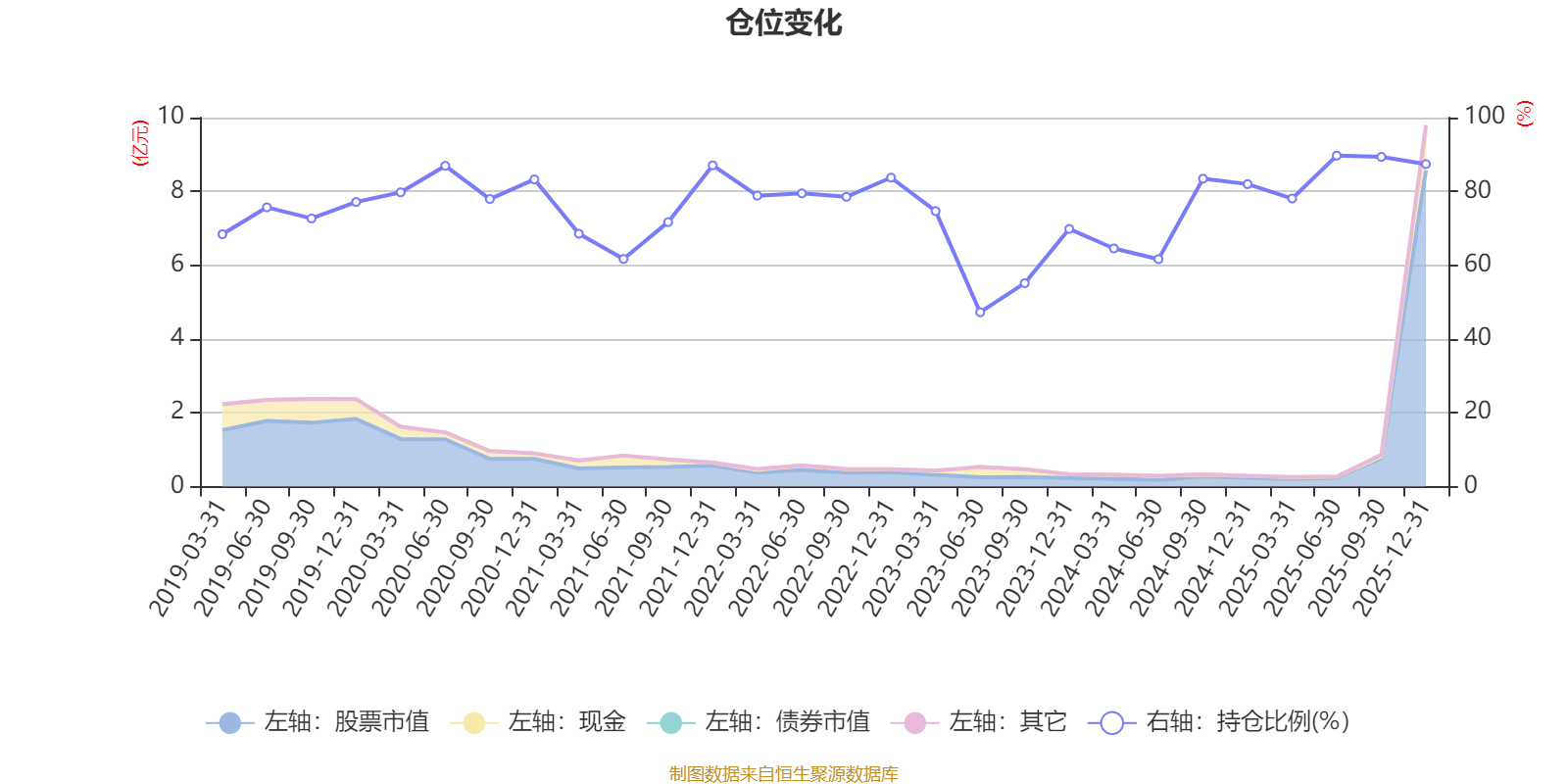 据定期报告数据统计,近三年平均股票仓位为73.58%,同类平均为72.57%。2025年上半年末基金达到89.7%的最高仓位,2023年上半年末最低,为47.23%。