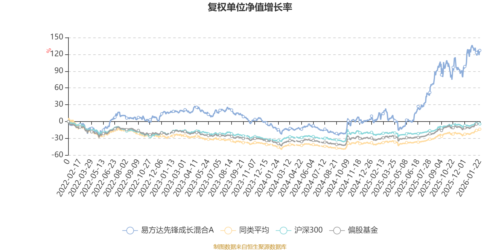 截至1月22日,易方达先锋成长混合A近三个月复权单位净值增长率为15.35%,位于同类可比基金106/621;近半年复权单位净值增长率为52.72%,位于同类可比基金47/621;近一年复权单位净值增长率为95.19%,位于同类可比基金17/613;近三年复权单位净值增长率为90.14%,位于同类可比基金19/535。