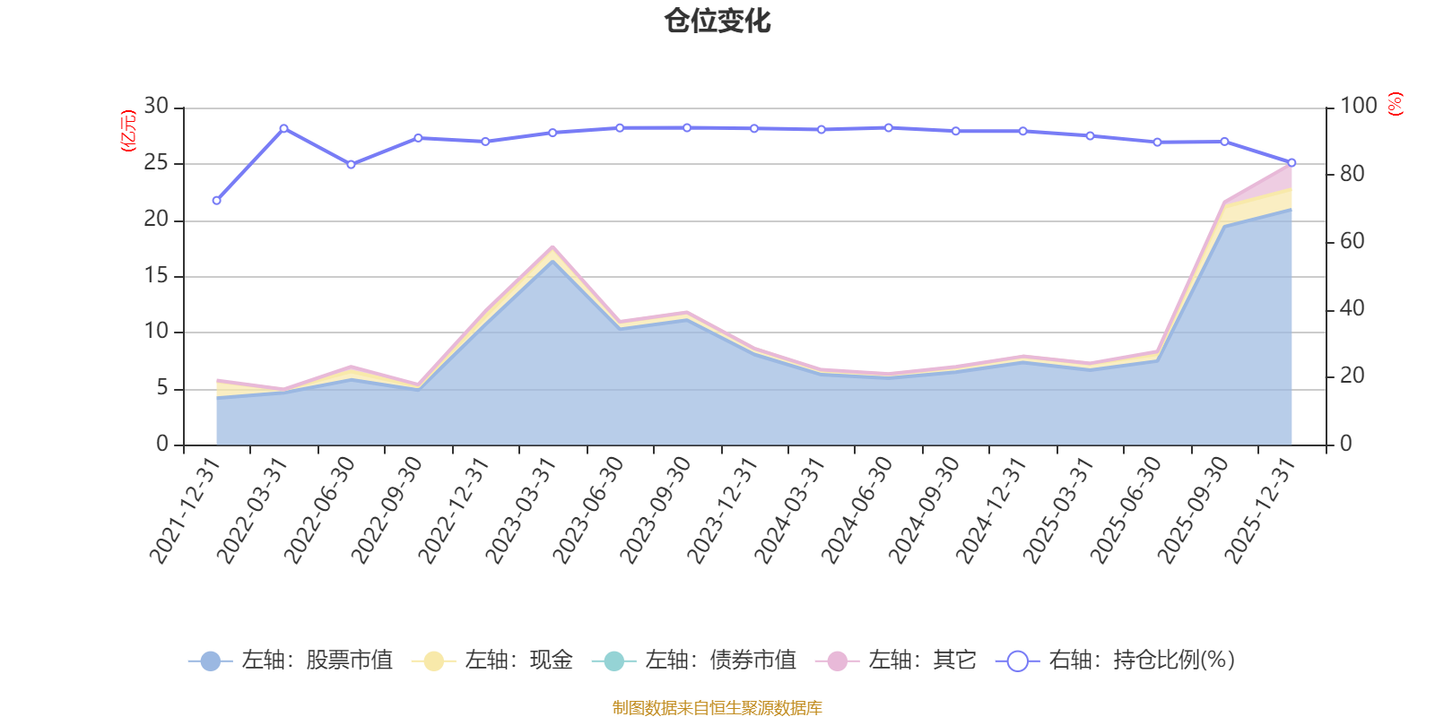 据定期报告数据统计,近三年平均股票仓位为91.91%,同类平均为85.83%。2023年三季度末基金达到94.02%的最高仓位,2021年末最低,为72.46%。