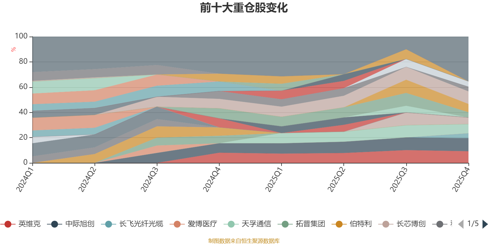 该基金持股集中度较高,近2年前十大重仓股集中度长期超过60%。截至2025年四季度末,基金十大重仓股分别是中际旭创、新易盛、英维克、天孚通信、仕佳光子、长芯博创、源杰科技、沪电股份、长飞光纤光缆、生益电子。