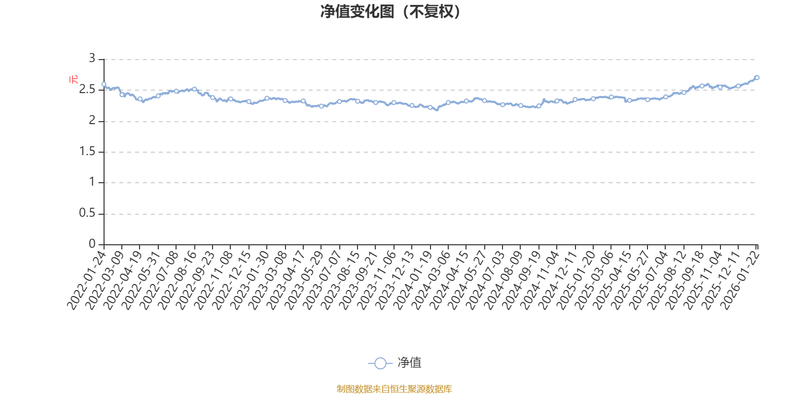 该基金属于偏债混合型基金。截至1月22日,单位净值为2.7元。基金经理是李中阳,目前管理的3只基金近一年均为正收益。其中,截至1月21日,易方达安心回馈混合A近一年复权单位净值增长率最高,达14.11%;截至1月22日,易方达悦稳一年持有混合A最低,为6.07%。