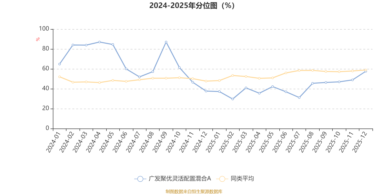 通过所选区间该基金净值增长率分位图,可以观察该基金与同类基金业绩比较情况。图为坐标原点到区间内某时点的净值增长率在同类基金中的分位数。
