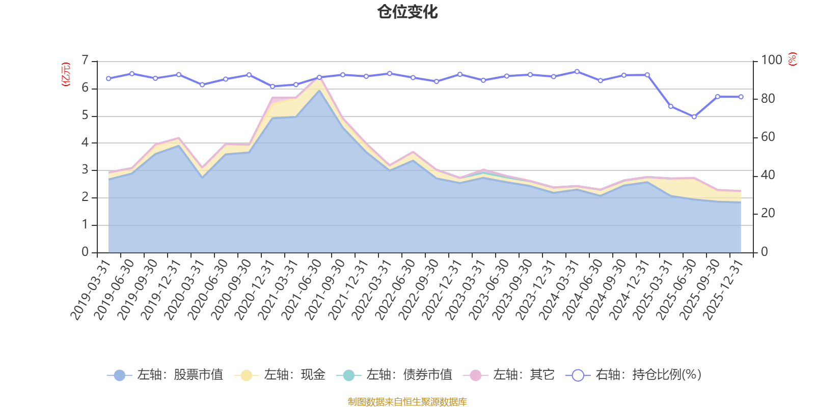 据定期报告数据统计,近三年平均股票仓位为87.23%,同类平均为72.57%。2024年一季度末基金达到94.54%的最高仓位,2025年上半年末最低,为70.92%。