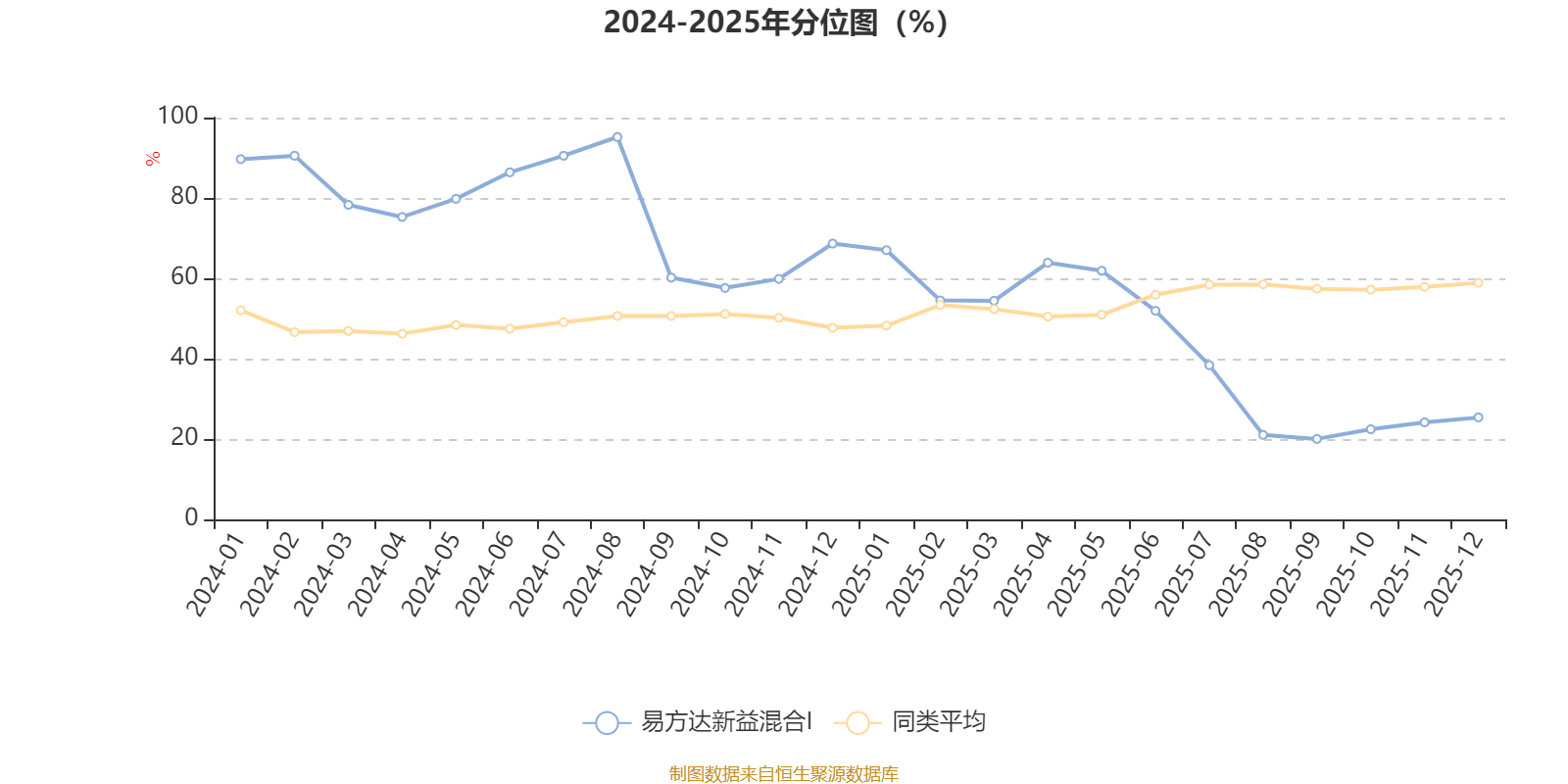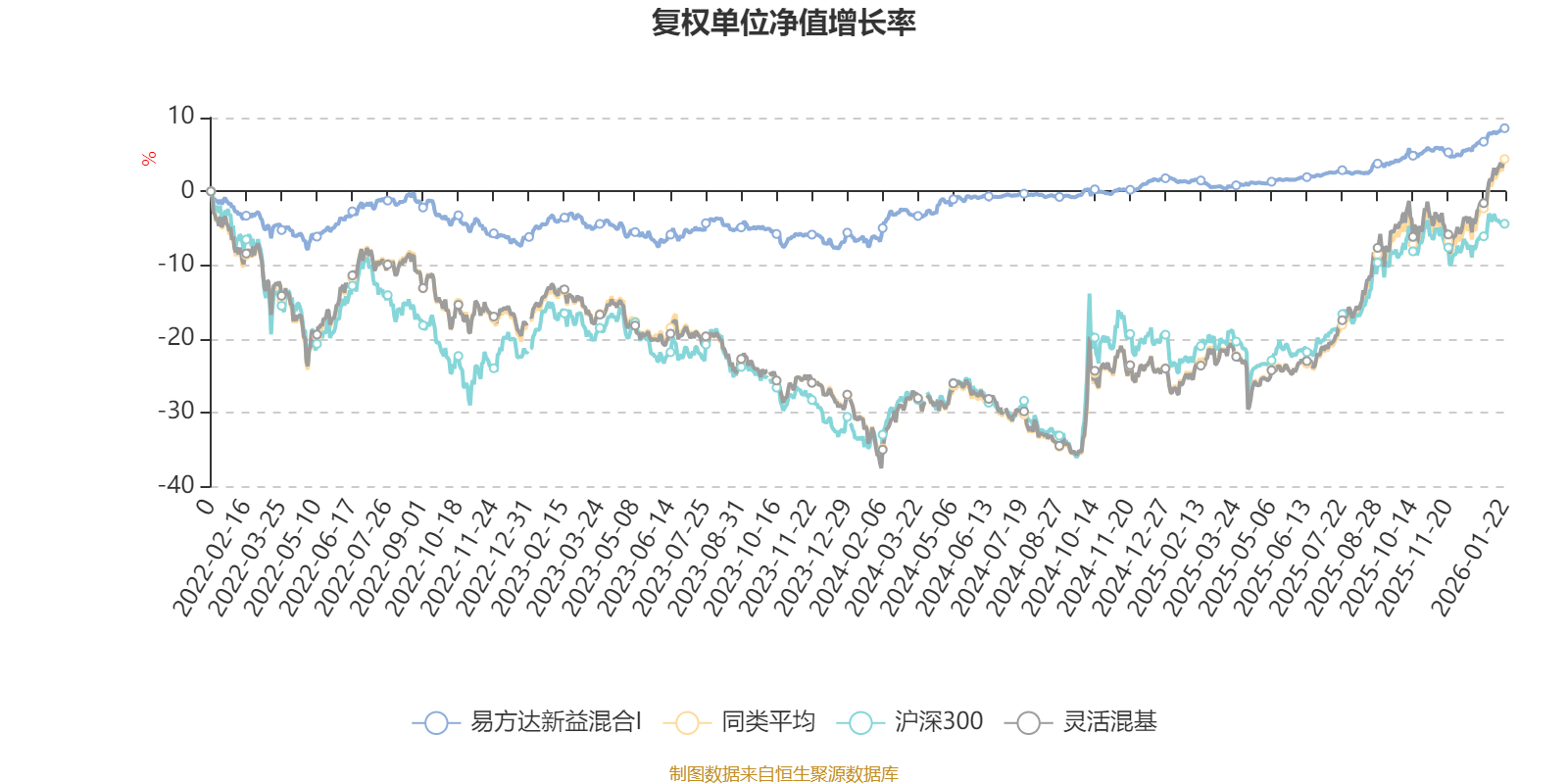 截至1月22日,易方达新益混合I近三个月复权单位净值增长率为3.33%,位于同类可比基金954/1286;近半年复权单位净值增长率为5.52%,位于同类可比基金1055/1286;近一年复权单位净值增长率为7.25%,位于同类可比基金1143/1286;近三年复权单位净值增长率为13.29%,位于同类可比基金708/1286。