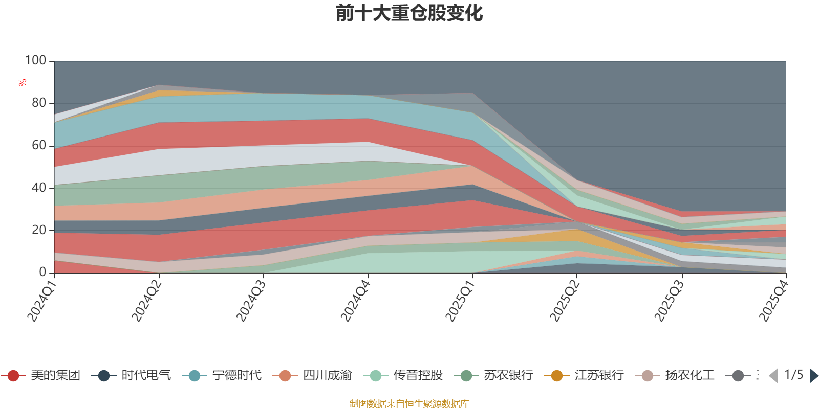 截至2025年四季度末,基金十大重仓股分别是紫金矿业、中国平安、长江电力、国泰海通、巨化股份、西部矿业、瀚蓝环境、三一重工、中国太保、宇通客车。