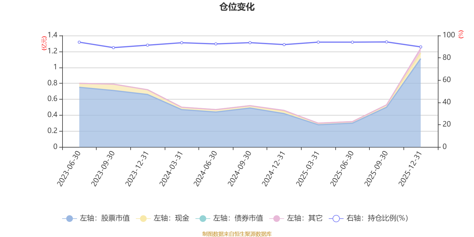 据定期报告数据统计,成立以来平均股票仓位为92.59%,同类平均为84.04%。2025年三季度末基金达到94.31%的最高仓位,2023年三季度末最低,为89.16%。