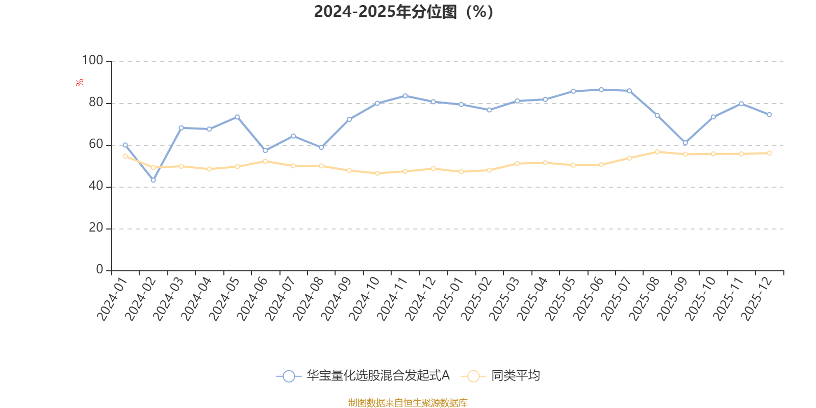 通过所选区间该基金净值增长率分位图,可以观察该基金与同类基金业绩比较情况。图为坐标原点到区间内某时点的净值增长率在同类基金中的分位数。