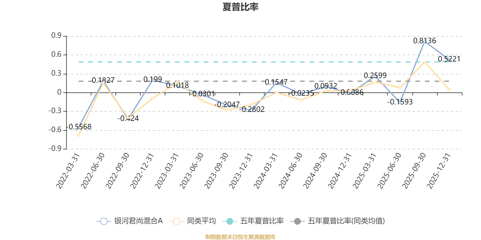 截至12月31日,基金近三年夏普比率为0.5511,位于同类可比基金52/116。