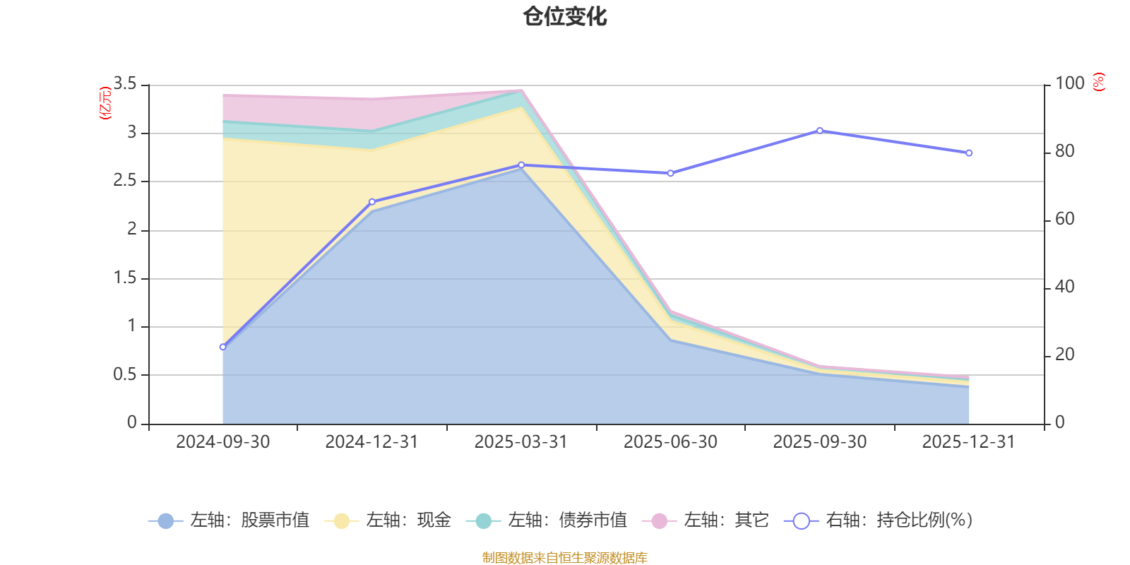 据定期报告数据统计,成立以来平均股票仓位为67.46%,同类平均为84.04%。2025年三季度末基金达到86.47%的最高仓位,2024年三季度末最低,为22.66%。