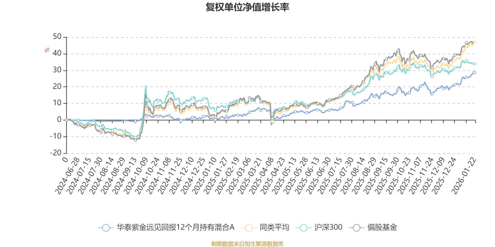截至1月22日,华泰紫金远见回报12个月持有混合A近三个月复权单位净值增长率为11.07%,位于同类可比基金281/689;近半年复权单位净值增长率为15.47%,位于同类可比基金483/689;近一年复权单位净值增长率为26.90%,位于同类可比基金478/673。