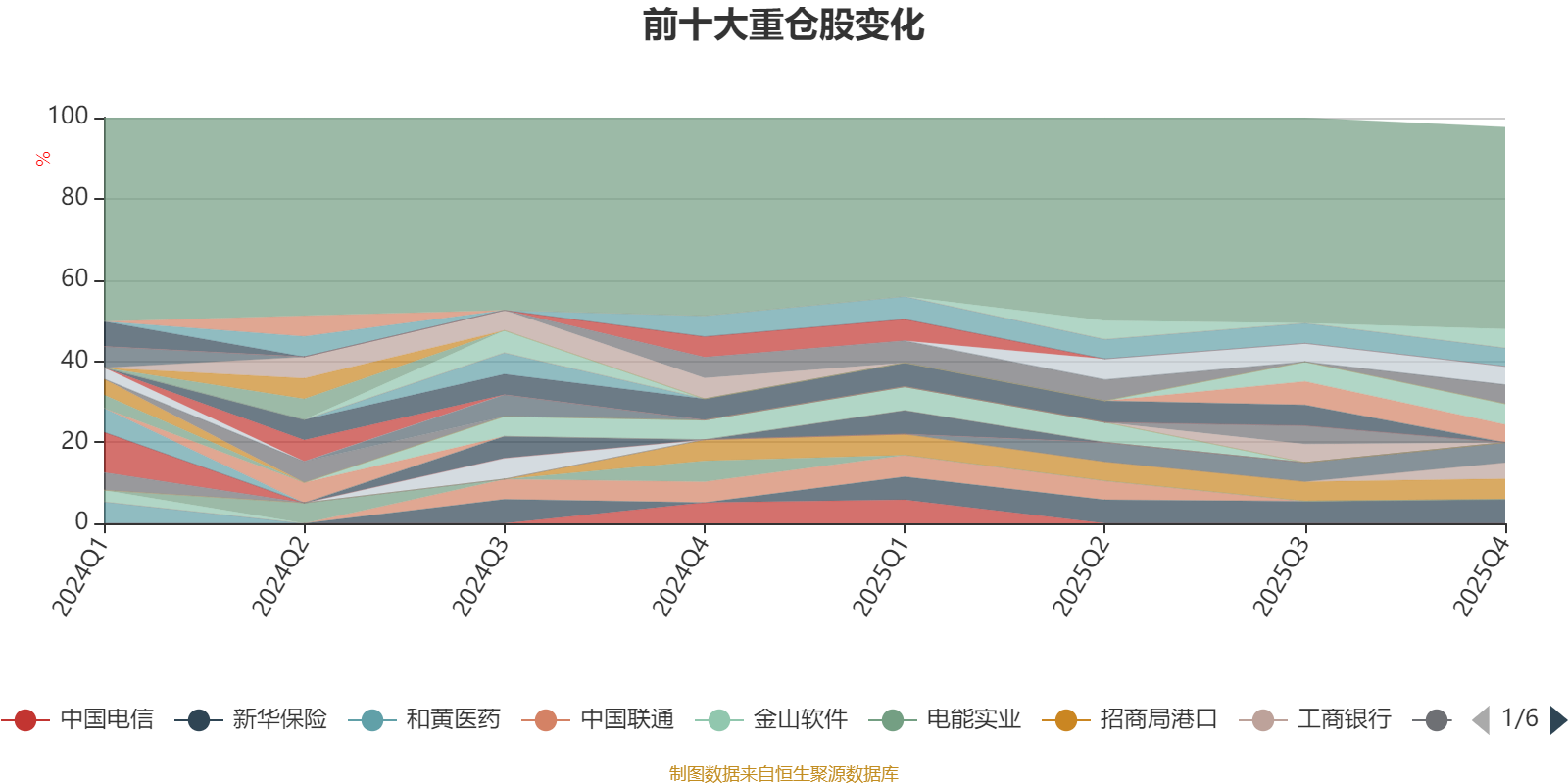 截至2025年四季度末,基金十大重仓股分别是新华保险、中国神华、招商局港口、中远海控、中信股份、重庆农村商业银行、电讯盈科、汇丰控股、中国银河、工商银行。