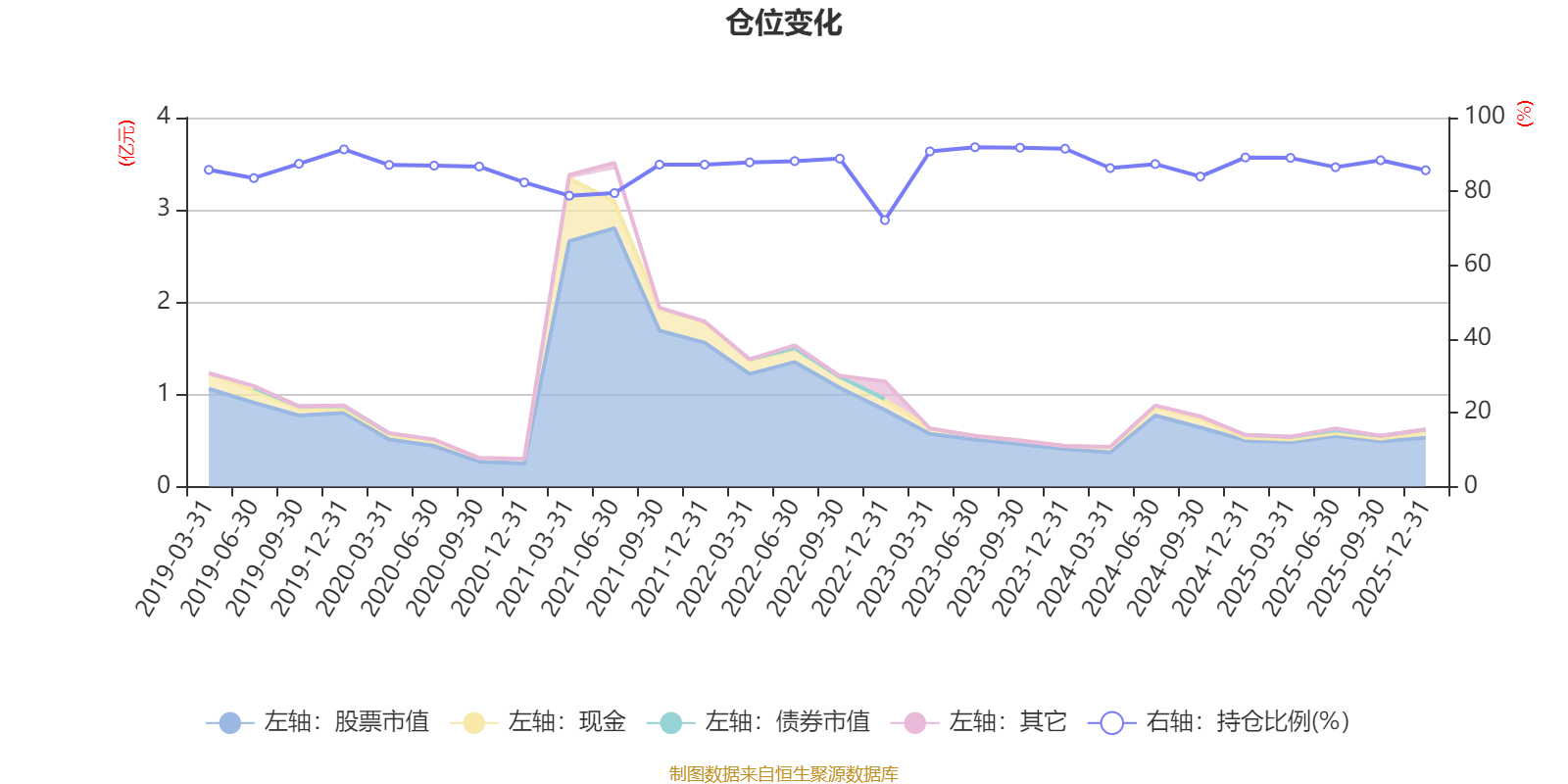据定期报告数据统计,近三年平均股票仓位为88.58%,同类平均为72.57%。2023年上半年末基金达到91.97%的最高仓位,2022年末最低,为72.22%。