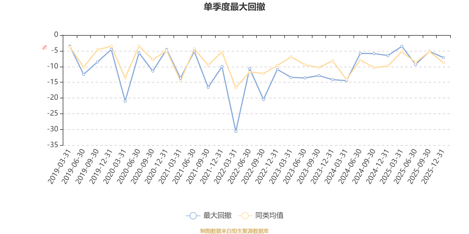 截至1月22日,基金近三年最大回撤为39.11%,同类可比基金排名894/1264。单季度最大回撤出现在2022年一季度,为30.61%。